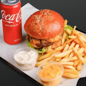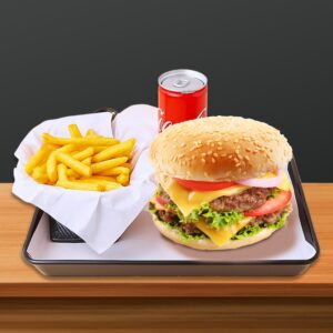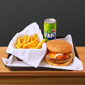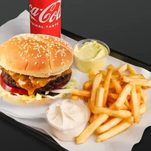 • 1 Cheese Burger • Pommes frites • 1 alkoholfreies Getränk 0,33l nach Wahl