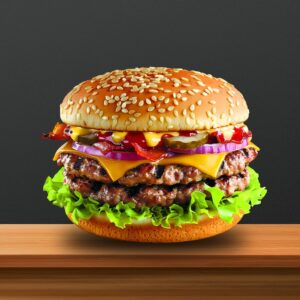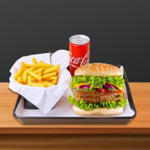 • 1 Double Hamburger mit 2 Patties • Pommes frites • 1 alkoholfreies Getränk 0,33l…