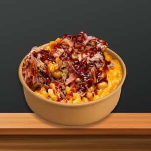 mit cheese macroni , crispy chicken , special chicken sauce , cheese sauce