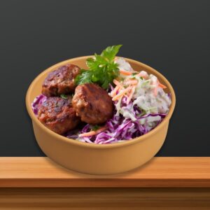 mit gemischte Salat, gegrilte köfte, zweibel und hausgemachter sauce