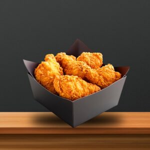 • 4 saftige Hähnchenteile • 8 mild-knusprige Wings • 4 Crispy Burger • 4 Pommes…
