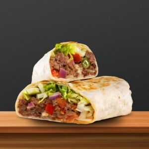 gegrillte Rindfleisch köfte im Durum brot mit frischem Salat, Tomaten, Zwiebeln und hausgemachter Sauce.